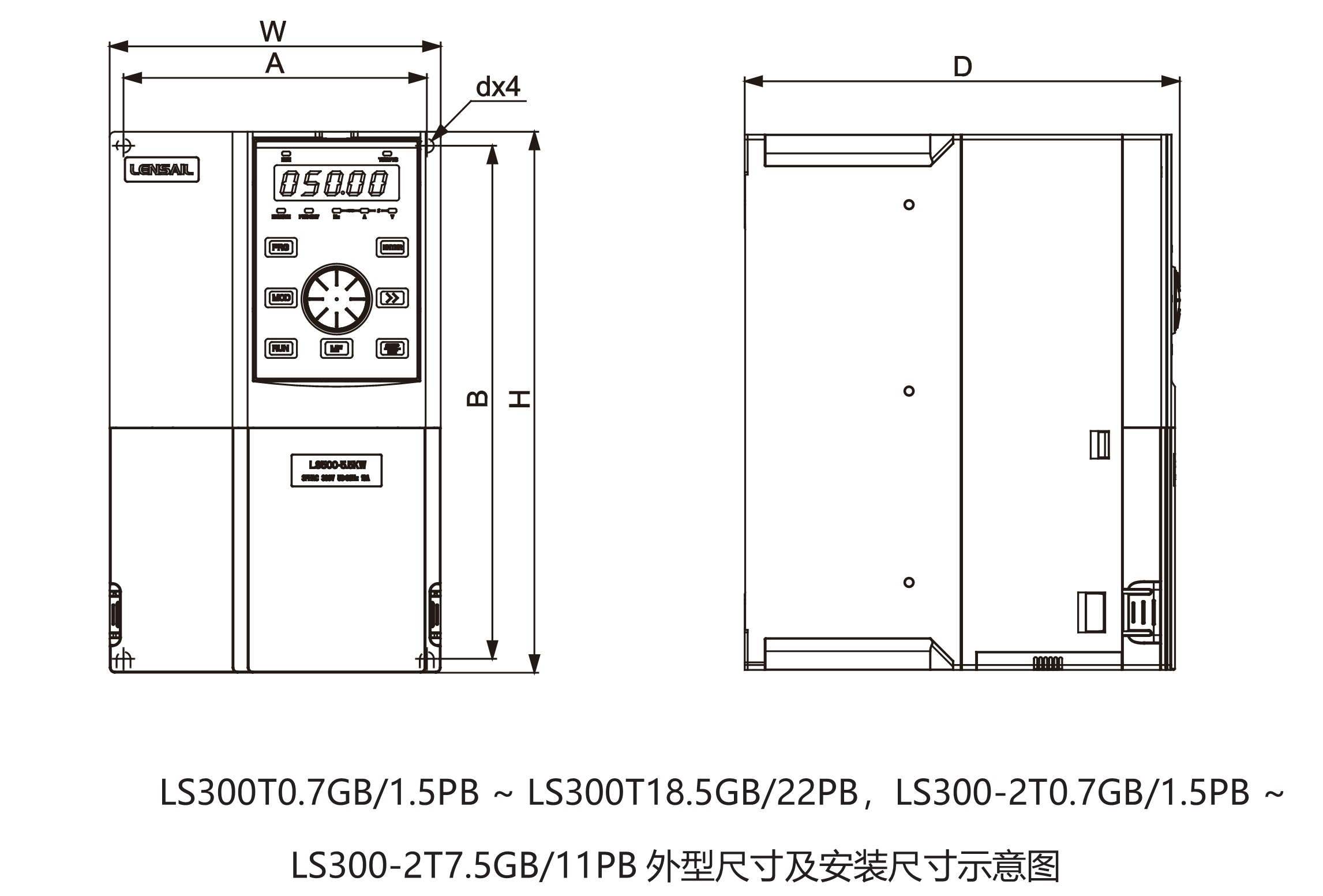 LS300 系列变频器是一款通用型变频器,可以轻松驱动和控制异步电机,具备用户可编程功能及后台软件监控、通讯总线功能,体积小,功能强大,性能稳定,满足国际主流标准和认证。可应用于纺织、造纸、拉丝、机床、包装、食品、风机、水泵等行业及各种自动化生产设备的驱动。